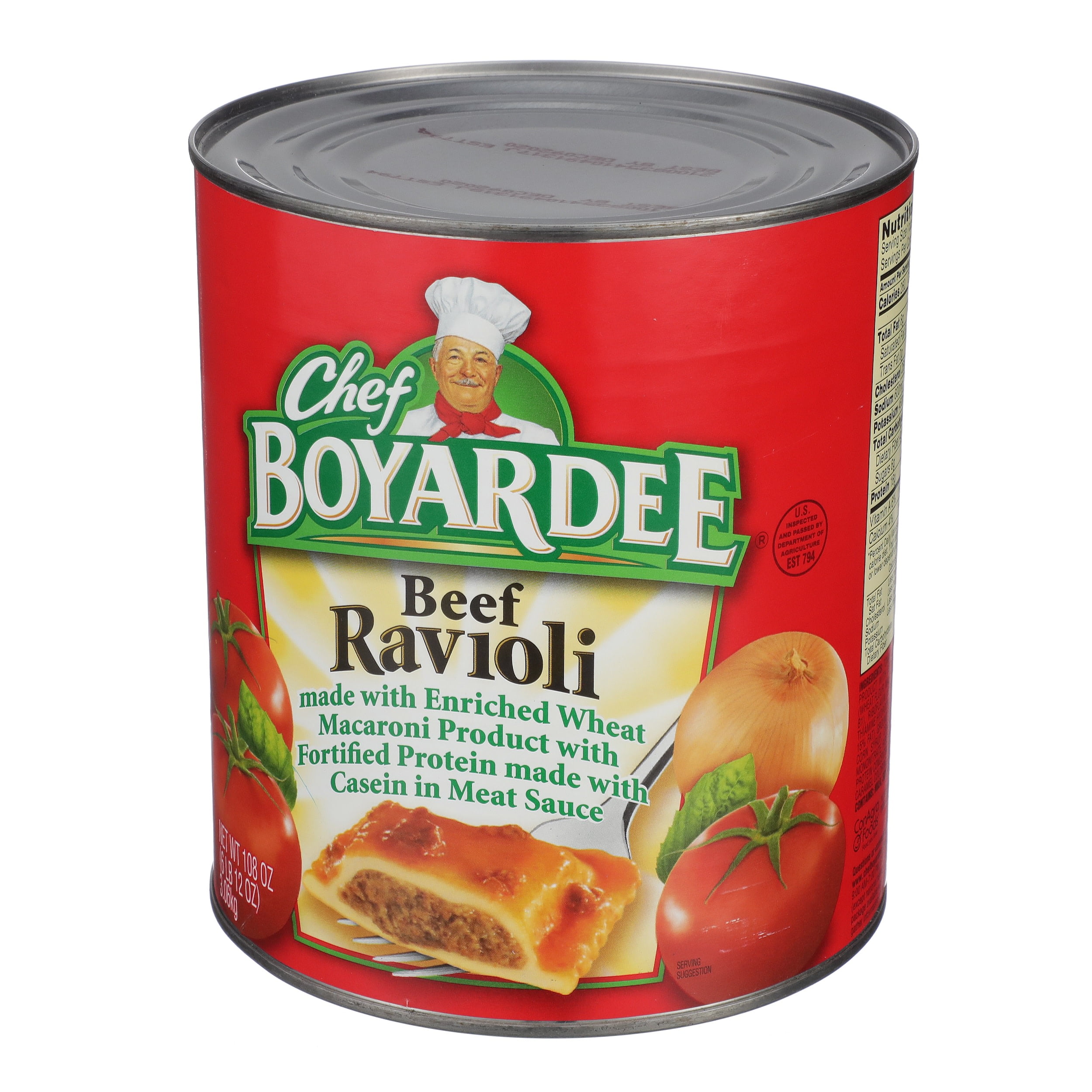 Chef Boyardee Beef Ravioli (108 oz) Delivery or Pickup Near ... "CHEF BOYARDEE Beef Ravioli is a classic crowd-pleaser and our extra large 108-ounce can makes it easy to feed a crowd! This size is perfect for any large gathering, school function, family reunion or other event that calls for tasty food made easy.