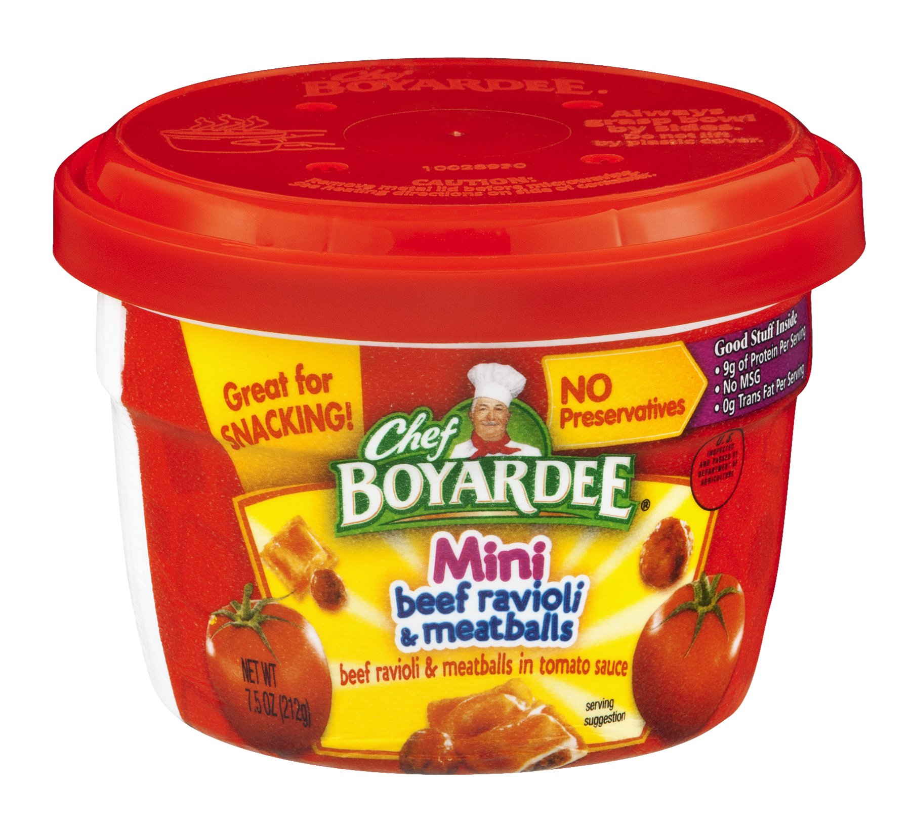 CHEF BOYARDEE | Smart Label - Conagra Brands Big Bowl Mini Beef Ravioli in Pasta Sauce. NET WT 14.5 OZ (411g) C. Cheese Ravioli in Meat Sauce Microwavable Cup. NET WT 7.5 OZ (212g) Cheese Ravioli in Tomato Sauce Can. NET WT 15 OZ (425g) Cheesy Burger Macaroni Can. NET WT 15 OZ (425g) Chicken Alfredo Can. NET WT 15 OZ (425g) J. Jumbo Spaghetti & Meatballs Can.