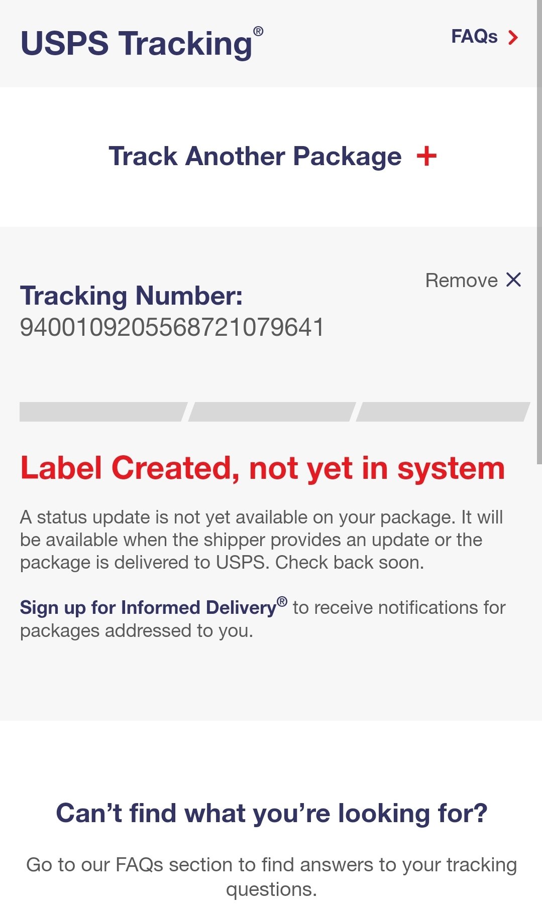 "Label created, not yet in system" - scam? Does USPS even have my ... Label Created, not yet in system A status update is not yet available on your package. It will be available when the shipper provides an update or the package is delivered to USPS. Check back soon. Maybe the link would help? dooke_ • 5 yr. ago If my tracking doesn't have it in, it's more than likely not in. [deleted] • 5 yr. ago [removed]