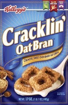 Amazon.com: Kellogg's Breakfast Cereal, Cracklin' Oat Bran, Excellent ... Convenient, ready to eat cereal packaged in a 17-ounce box; packaged for freshness and great taste There is a newer version of this item: Kellogg's Cracklin' Oat Bran Cold Breakfast Cereal, Good Source of Fiber, Original (3 Boxes) $17.99 ($0.36 / Ounce) (2,011) In Stock.