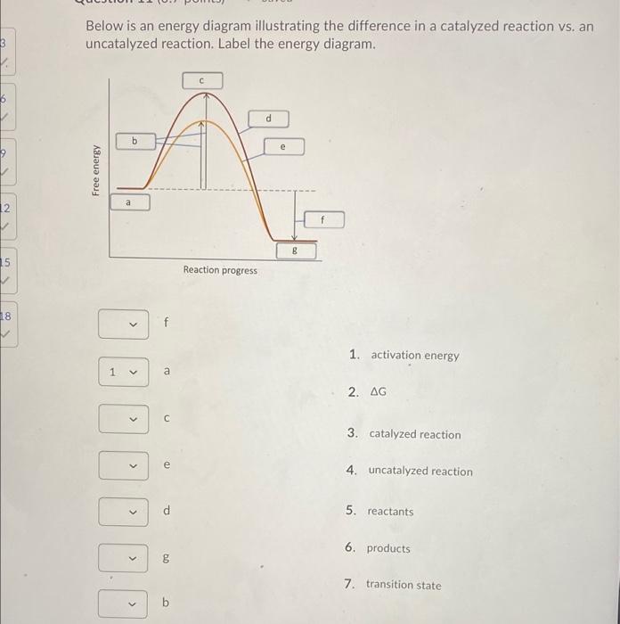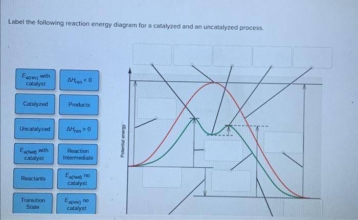 Solved Label the following reaction energy diagram for a ... Question: Label the following reaction energy diagram for a catalyzed and an uncatalyzed process. help!! thx. Show transcribed image text. Best Answer. This is the best answer based on feedback and ratings. 88 % ...